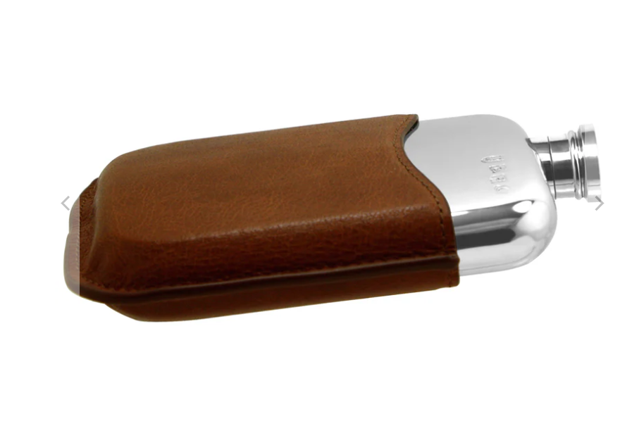 Характеристики Фляжка прямоугольная с закругленными углами в кожаном чехле "Классика"- .6oz Pewter Hip Flask with Genuine Tan Leather Pouch